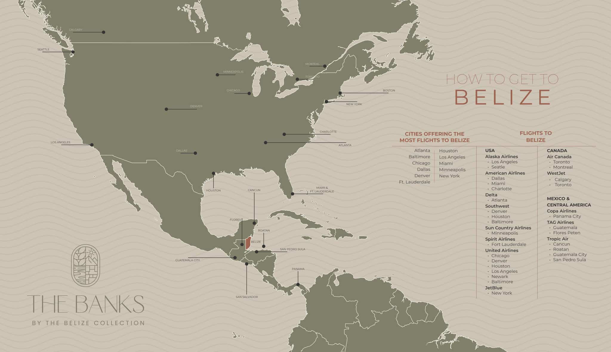 Getting to Belize has never been easier! Major airlines, including American Airlines, WestJet, JetBlue, Alaska Airlines, Delta Airlines, Southwest Airlines, SunCountry Airlines, Air Canada, and Spirit Airlines all offer flights to Belize.